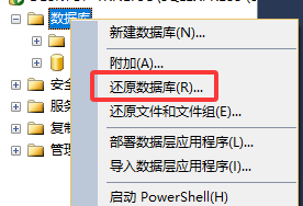 1、打开SSMS,选择右键数据库选择“还原数据库”