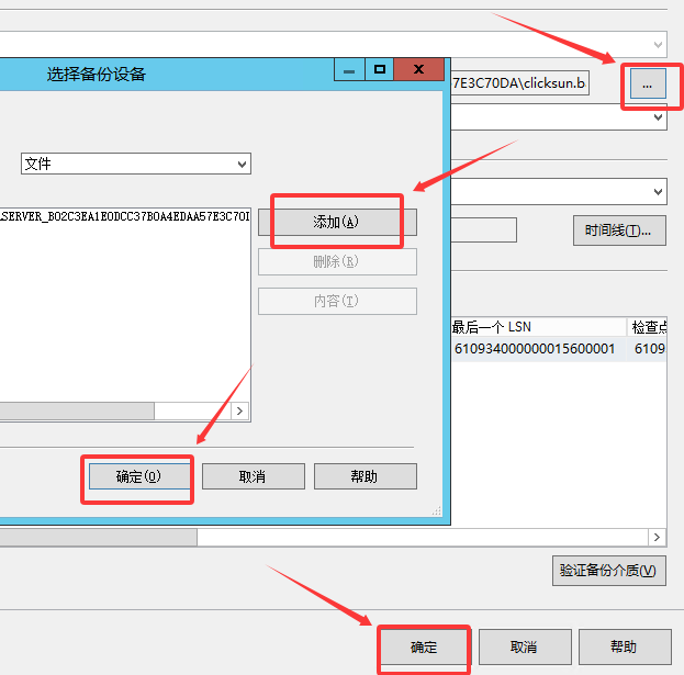 2、“常规”选项卡中,选择“设备”,然后点击右侧“...”弹出窗口,添加bak文件