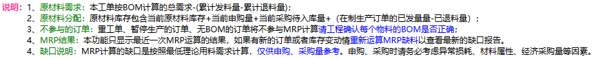 运算完毕后就会得到相应的物料运算结果,找到对应订单查看当前的一个缺料和缺口情况,根据情况了解该物料目前库存是否充足。