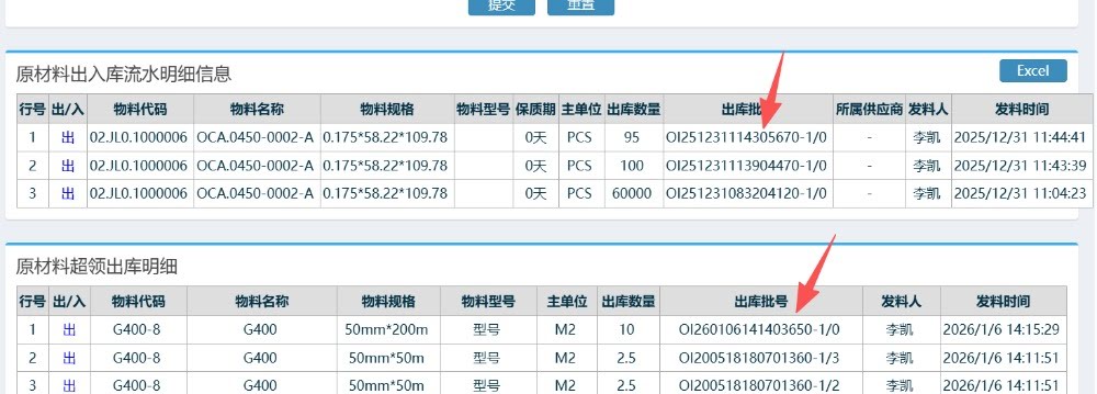 方法2: 操作步骤:仓库管理-物料流向管理-物料出入库管理明细