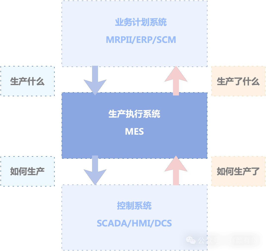 美国先进制造研究机构AMR(Advanced Manufacturing Research)将MES定义为“位于上层的计划管理系统与底层的工业控制之间的面向车间层的管理信息系统”,它为操作人员/管理人员提供计划的执行、跟踪以及所有资源(人、设备、物料、客户需求等)的当前状态。