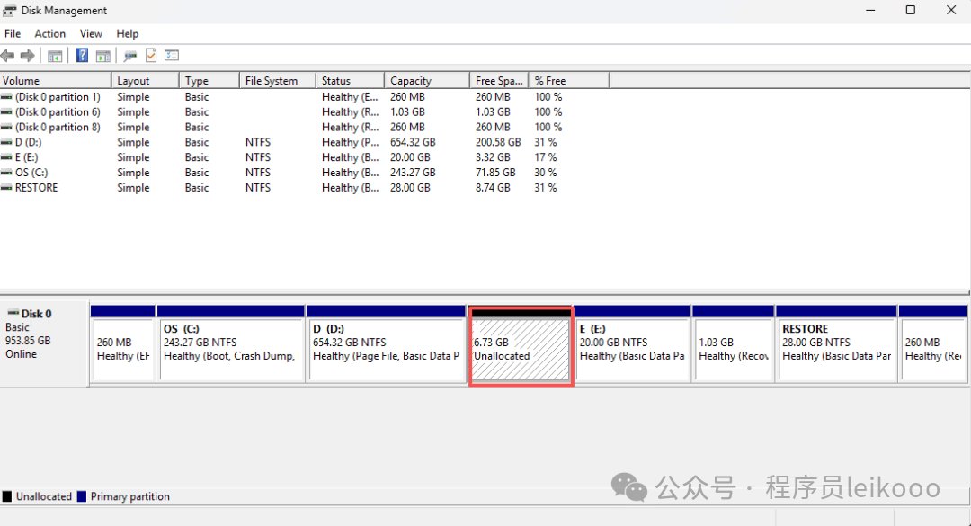 1、首先使用 Window 自带的软件创建 unallocated 空间