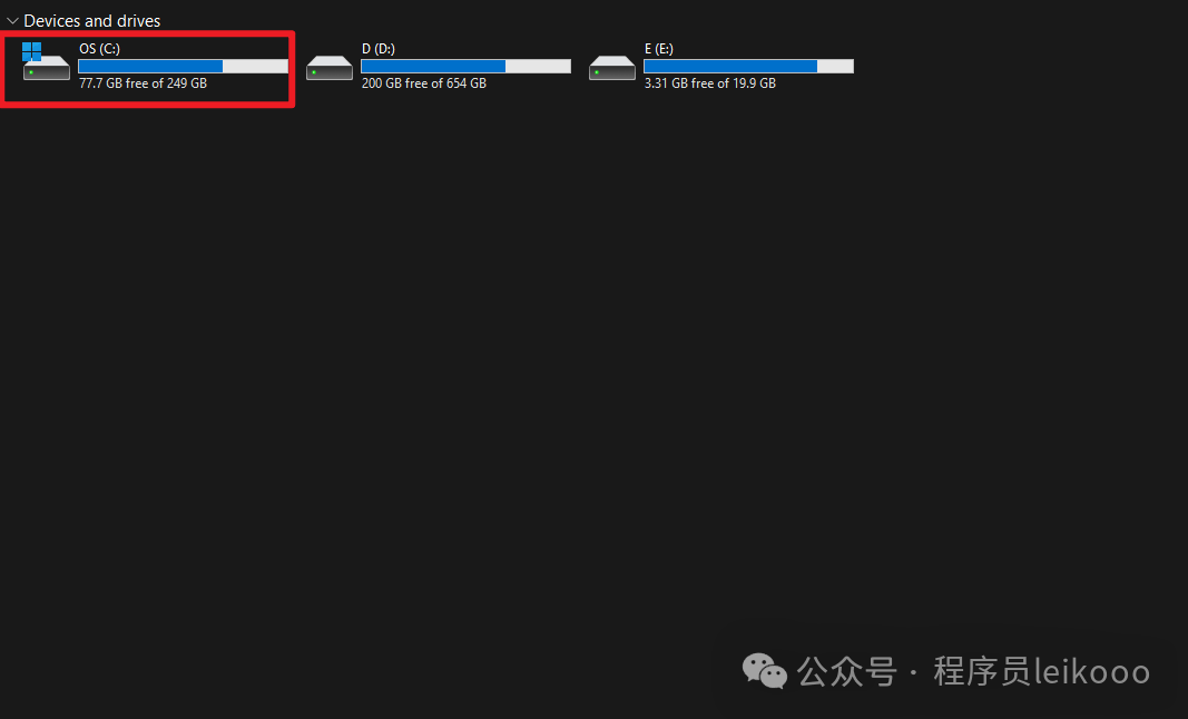 之后电脑就会重启,重启之后可以 WIN + E 看磁盘空间,可以看到 C 盘大小变大了