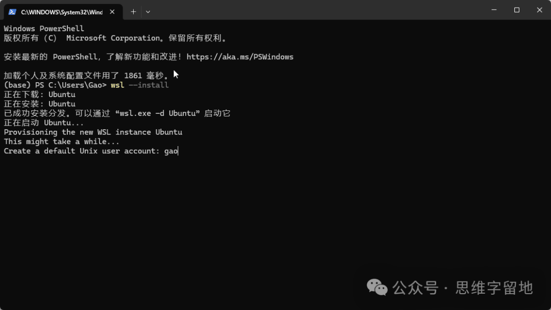 输入wsl --install