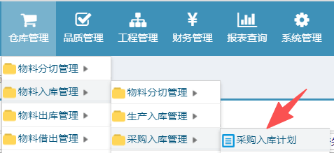 操作步骤,仓库管理-物料入库管理-采购入库管理-采购入库计划
