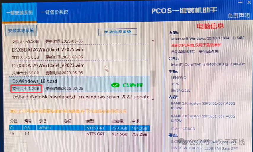抱着将信将疑的心态,我立刻下载了那个1.2G的ESD镜像,用PE盘开始安装。