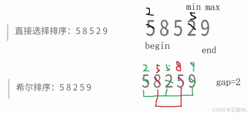 直接选择排序的特性总结: 1. 直接选择排序思考⾮常好理解,但是效率不是很好,实际中很少使⽤