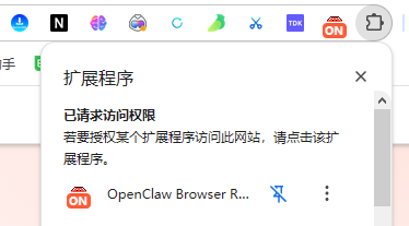 安装完成后,Chrome 工具栏会出现 OpenClaw 图标。