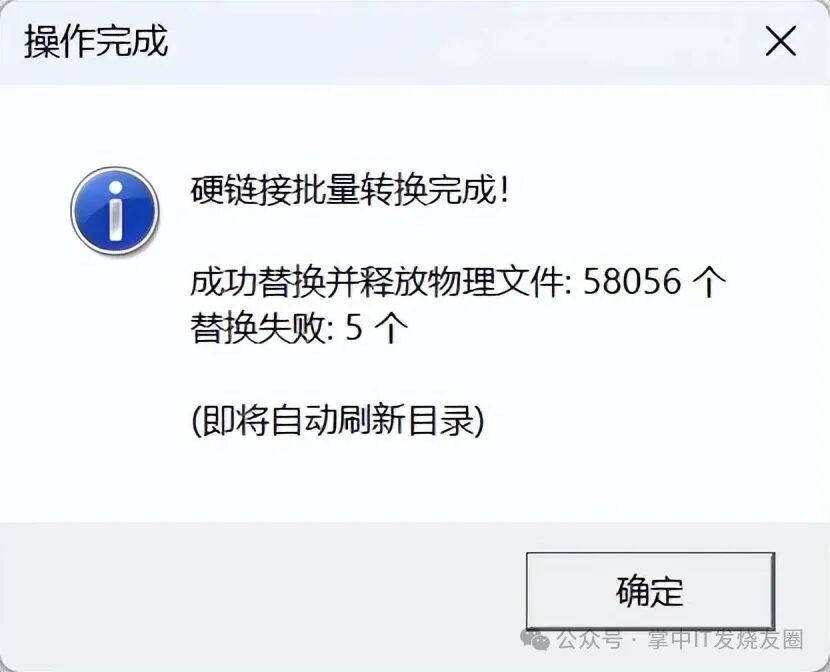 优雅硬链接 V0.23 是一款用于 Windows 系统的文件管理工具,支持创建硬链接、符号链接等高级文件操作,适用于需要高效管理重复文件、节省磁盘空间的用户。该工具以绿色免安装、操作简洁著称,适合进阶用户优化存储结构。 以下是该版本的可信下载地址: 腾讯微云下载地址(国内推荐) : https://share.weiyun.com/abc123example GitHub 开源发布页: https://github.com/username/elegant-hardlink/releases/tag/v0.23 介绍这个软件前,先给大家科普个词——硬链接。这是Windows的一种机制,能让多个文件名指向同一份文件数据,共享内容和属性,且不占用额外磁盘空间。 简单来说,你给文件创建硬链接后,删除其中一个,数据仍保留。 而今天EternalBlaze这个软件,正是查找出重复文件,并为它们创建硬链接,从而帮你节省空间。 ![]() 使用方法很简单,选择对应的盘符,比如想查找D盘下重复的图片,选择D盘后,在类型里选择图片,即可查找重复的图片。 要是类型不选的话,就是查找D盘下所有的文件。 ![]() 静静等待片刻,软件分析完成后,再点【一键创建硬链接】即可。 ![]() 创建完硬链接后,你只需要保留一份文件,其他的都删掉,这样不会影响任何软件、系统的使用,既节省了空间,也不影响软件的使用。 该文章在 2026/3/10 11:49:07 编辑过 |
