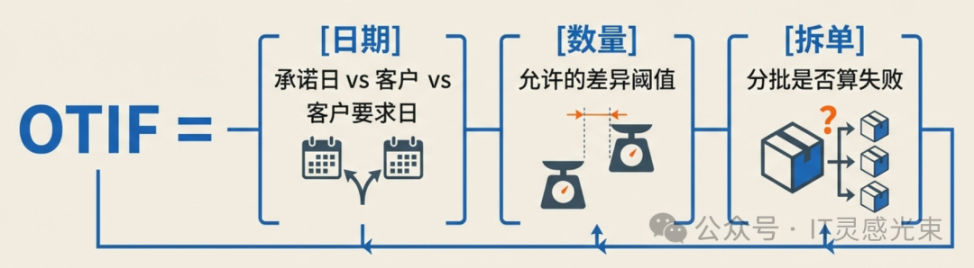 • OTIF要同时满足:日期口径(承诺日/客户要求日)+数量口径(允许差异阈值)+拆单规则(分批是否算失败)