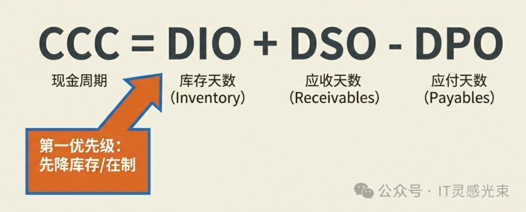 • 先降DIO:减少在制、缩短交期、分层库存