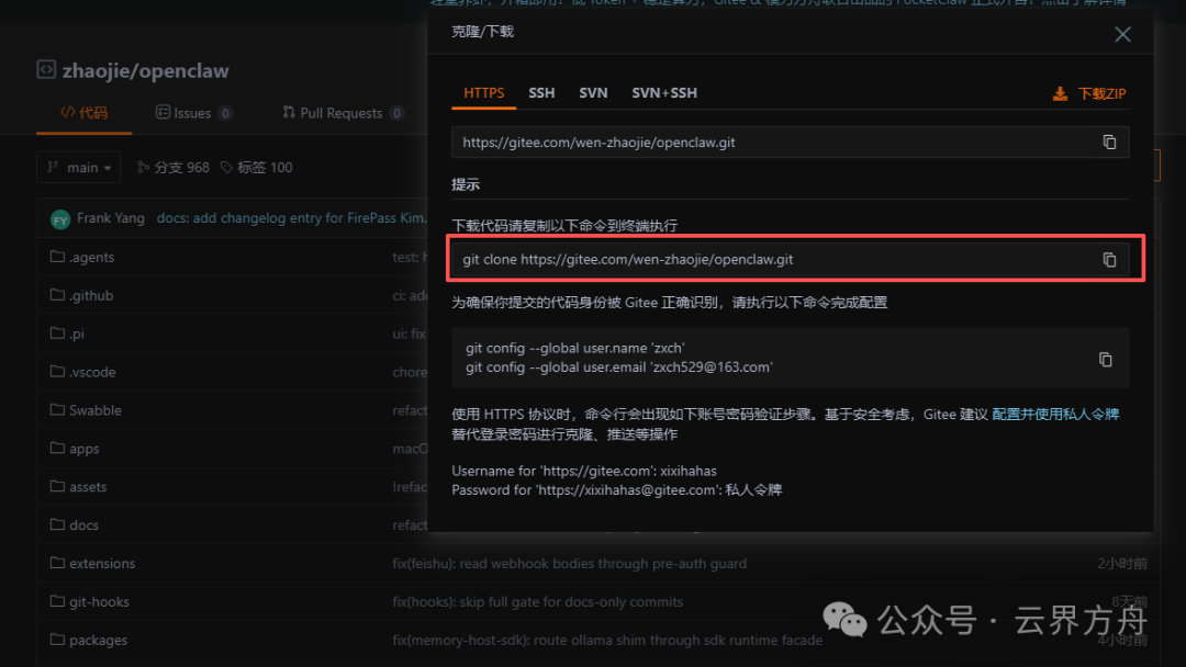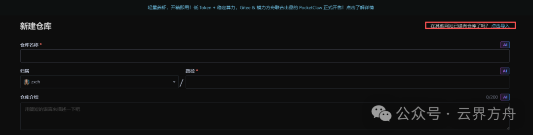 注册并登录之后,就可以把github上的项目导入到gitee上面你输入OpenClaw 的地址,会发现已经有公开仓库,你直接点击就可以访问,如果你想在你的仓库上进行管理,继续导入就行了如果你想把仓库克隆到本地,直接复制克隆地址粘贴到命令行中就可以啦!如果你想同步更新代码仓库,点击仓库上方的同步图标就行如果你懒得弄,直接使用OpenClaw,给他一个命令,帮我把这个代码仓库克隆到本地,它就会执行了,不过会消耗很多Tokens哦!自己动手我感觉更合适!