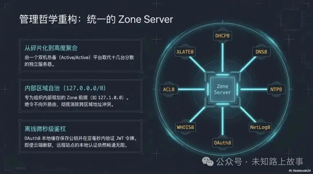 这是 IPv8 最花力气的地方。草案里定义了一个叫 Zone Server 的统一平台。