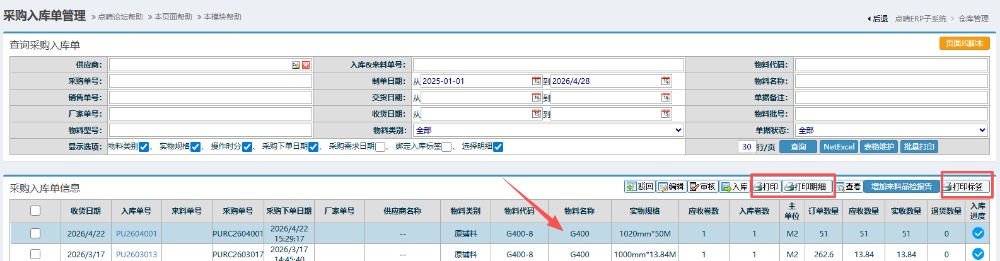 点晴模切ERP仓库管理—入库管理之采购入库单管理操作流程