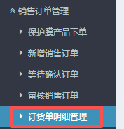 操作步骤:销售管理——销售订单管理——订货单明细管理;如下图所示: