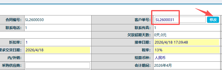 录入新的单号,点击“修改”按钮修改完成,修改后关掉页面即可。 ![]() 点晴模切ERP更多信息:https://moqie.clicksun.cn,联系电话:4001861886 该文章在 2026/4/28 11:14:34 编辑过 |