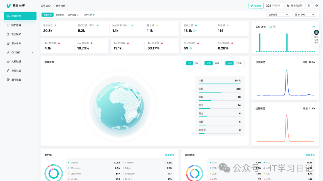 简介SafeL是一款开源免费的自托管Web应用防火墙(WAF),旨在为Web应用服务提供一层安全防护屏障,可有效防御各类非法恶意攻击。它提供了访问频率限制、人机验证、动态防护等核心功能,通过过滤和监控Web应用与互联网之间的HTTP流量来保护Web服务,可有效抵御各类SQL注入、XSS、代码注入、命令注入、CRLF注入...