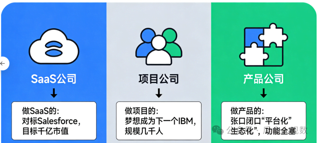 过去十年,中国软件行业有一个深入骨髓的执念:做大。因为这个行业,头部效应太明显了,仿佛给大家直接指明了路径,就这么做就可以;比如:做SaaS的,对标Salesforce,目标是千亿市值;做项目的,梦想成为下一个IBM,动辄几千人规模;做产品的,张口闭口“平台化”、“生态化”,恨不得把所有功能都塞进去。我对这个“做大”更...