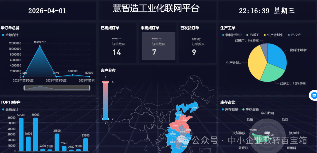 最近去客户工厂,经常看到车间里挂着一块大屏幕。上面实时显示:今日生产进度、订单完成率、库存状态、人员报工情况……数据滚动更新,一目了然。这就是**BI数据看板**,也叫数字工厂大屏。**为什么越来越多的工厂老板想要这个?**原因很简单:**管理需要数据支撑,数据需要可视化。**以前老板了解工厂状态,要靠:-走到车间看一...