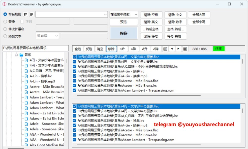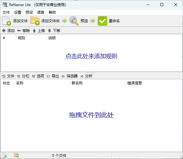 😞文件重命名工具gufengaoyue大佬出品的重命名工具,支持规则叠加,结果预览。命名规则1、*表示原文件名。如文件text.txt,用规则*-abc,则生成text-abc.txt。