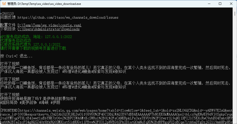 😞WechatVideoSniffer,微信视频号下载工具支持下载单个视频、支持批量下载用户视频、支持批量下载用户直播回放,只支持Windows。使用说明