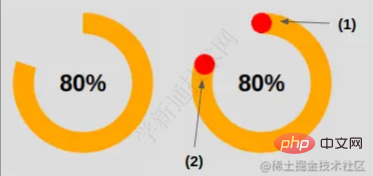 conic-gradient(var(--c) calc(var(--p)*1%), #0000 0);} 针对图上的效果(2),是将圆形放在结束的边缘。 .pipe: after {