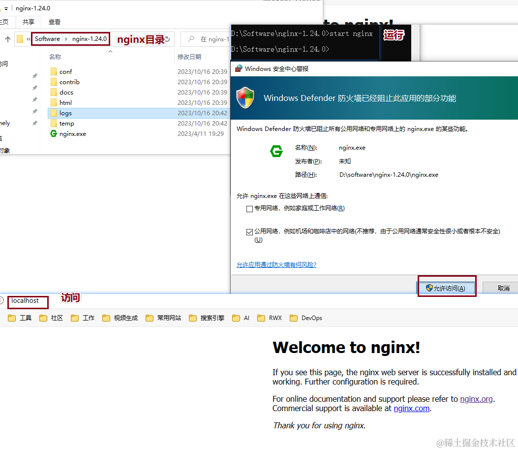 Windows 安装使用 nginx 安装运行 直接官网下载即可 v1.24.0