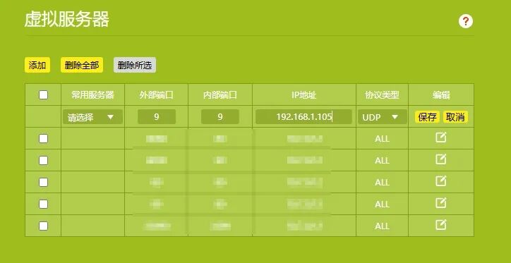 - 内部端口:设置为9(与外部端口保持一致)