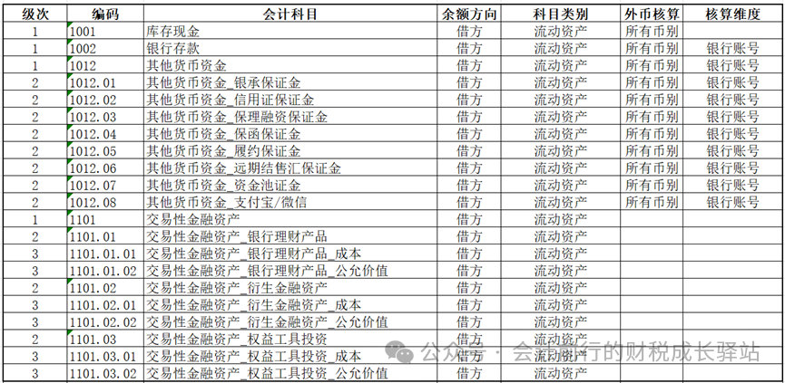 新会计准则的实施对企业的财务管理提出了更高的要求,设置合规、合理的会计科目是会计核算的基础,决定着核算的基础数据、记录方法和原则。是确保财务信息准确性和完整性的关键,直接影响到会计信息质量水平,影响到会计信息提供效率,影响到财务决策的效果。本文探讨新会计准则下的多维会计科目体系设置与应用,并提供详细的操作指南,旨在帮助企业提升财务管理效率。 通常情况下,会计科目分为资产类、负债类、所有者权益类、成本类、损益类、共同类。按照多年的财务工作经验,多维会计科目的设置需要考虑几个维度: 1、需要考虑选用的会计准则的法定要求。原则上国内企业应参考会计准则统一规定的一级会计科目编号(4位编码),不要随意打乱重编,企业可结合自身实际增设、减少或合并某些会计科目及设置明细科目。 2、需要考虑企业财务分析的管理需求。一些企业为发挥财务的管理价值,设置了专门的财务分析岗位,每月需要编制经营分析报告向管理层汇报,经营分析报告的数据来源就是财务核算的数据,因此需要根据财务分析岗位的同事设置细化的会计科目和多维辅助核算项目。 3、需要考虑会计科目与业务系统数据关联,确保财务数据与业务数据的一致性。比如:企业有完善的进销存库存系统、固定资产系统、费用报销系统等业务系统,会计科目设置时按存货大类进行科目设置,固定资产按辅助核算项目分类设置,费用系统需要建立费用项目与会计科目映射关系。 4、需要考虑会计科目与辅助核算实行分层设计,应分尽分、精准到点。在设计会计科目和辅助核算(核算维度)时能使用辅助核算(核算维度)的,就不要使用明细科目。辅助核算能够使会计科目体系更加简洁,同时通过设置不同的辅助核算维度,实现对经济业务的多维度反映和管理。 一、多维会计科目体系设置方法: 1.一级科目应严格遵循《企业会计准则-应用指南》附录的“会计科目和主要账务处理”设置科目,统一编码,科目名称和核算内容需与准则要求一致,应符合合规通用的原则。企业可结合自身实际增设、减少或合并某些会计科目,制造型企业的会计科目可分为五类,包括资产类科目、负债类科目、所有者权益类科目、成本类科目、损益类科目。 2.明细科目设置要坚持“分类合理,繁简适当”的原则,建议一般设置到三级科目即可,避免层级过深导致数据混乱和增加管理成本。若需更详细核算,可通过核算维度(如部门、项目、客户等)辅助分析,而非增加科目层级,应符合简洁高效的原则。科目编码时,不要将编码顺序号全部填满,保持一定的可扩展性。 3.由业务模块集成的会计科目通常不需要增加明细科目,如启用了固定资产系统,可设置资产类别的辅助项目,如启用进销存存货系统,可设置存货类别与存货科目的映射关系,如启用费用管理系统,可设置费用项目、部门核算、人员辅助的辅助核算。会计科目的设置应在一定时期内保持稳定,不宜经常变更,符合相对稳定性的原则。并非要求会计科目绝对不能变更,当会计环境发生变化时,会计科目也应随之作相应的调整,以及时全面地反映经济活动。 4.辅助核算是对账务处理的一种补充,即实现更广泛的账务处理,也适应企业管理和决策的需要。常见的辅助核算有:往来单位、部门、个人、项目等。部分财务软件还支持自定义扩展辅助核算项,以满足企业个性化需求。辅助核算必须设在末级科目上,尽量不要修改科目的辅助核算。 5.设置会计核算科目与核算维度都要遵循业务需求导向,匹配管理需求。 (1)当需要按单一维度核算时,明细科目更简单直接。如应付职工薪酬科目核算的内容多而杂,包括职工工资、职工福利费、职工教育经费、社会保险、住房公积金等均通过本科目核算,应设置完整合规的明细科目。如应交税费科目设置需要考虑符合税务相关规定的要求,更有利于税务申报。 (2)当需要按多个维度分析数据时,应采用辅助核算方式。如应收账款、预收账款、预付账款、应付账款、其他应收款和其他应付款这三组往来科目是最重要的,使用频率较高,需要设置二级甚至到三级明细科目。费用类科目主要以辅助核算为主,根据需要核算的精细度来设置【部门】、【职员】、【项目】等辅助项目,也可以同时设置多个辅助核算项目。会计科目和辅助核算的组合如下: 二、制造型企业多维会计科目设置示列: 1.货币资金和交易性金融资产科目设置示例 1.1银行存款科目核算企业存入银行或其他金融机构的款项,因银行账户是变动的,不但会增加,还会减少,所以建议设置成辅助核算。 1.2交易性金融资产是指核算企业指定或应划分为以公允价值计量且其变动计入当期损益的金融资产,是企业为了近期内出售而持有的金融资产。比如,企业以赚取差价为目的从二级市场购入的股票、债券、基金等。通过“交易性金融资产”科目核算,可按交易性金融资产的类别和品种,分别“成本”“公允价值变动”等进行明细核算。 2.应收往来科目设置示例 2.1应收票据核算企业因销售商品、提供劳务等而收到的商业。包括银行承兑汇票和商业承兑汇票。实务中,电子债权凭证(以“链”“信”“单”“宝”“e”等命名)与商业承兑汇票具有高度相似性,在会计上将其计入应收票据科目核算确实有一定合理性。如已背书或已贴现未到期的