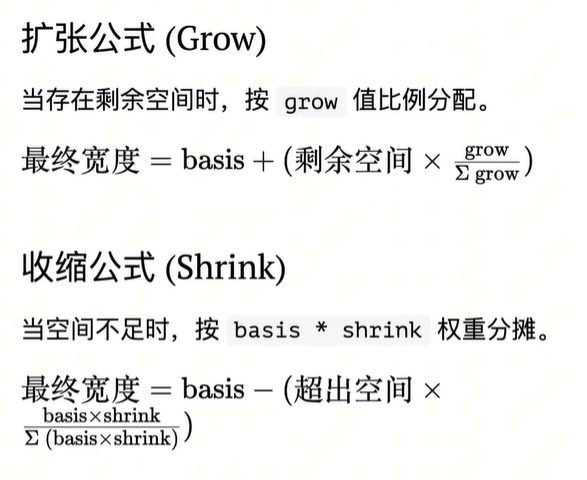 • 空间充足时,分配空间:系统根据flex-grow的比例分配余下空间